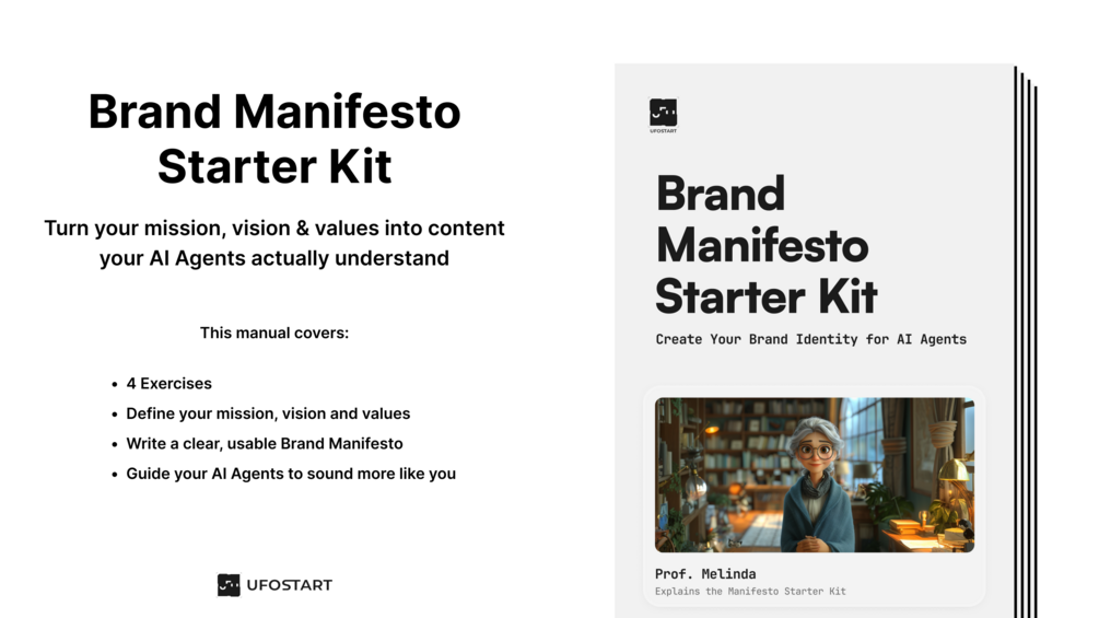 - A final ready-to-paste Manifesto for use in any AI brand setup (including UFOstart’s Data Hub)
